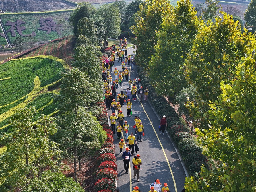 9時30分,安化茶鄉(xiāng)花海南廣場,來自長沙、湘潭、衡陽、常德、益陽、婁底、湘西州等地800多組家庭、近2000名參賽者,分大將、中將、少將三個組別,在茶鄉(xiāng)花海歡樂健走,盡情享受周末的美好時光。