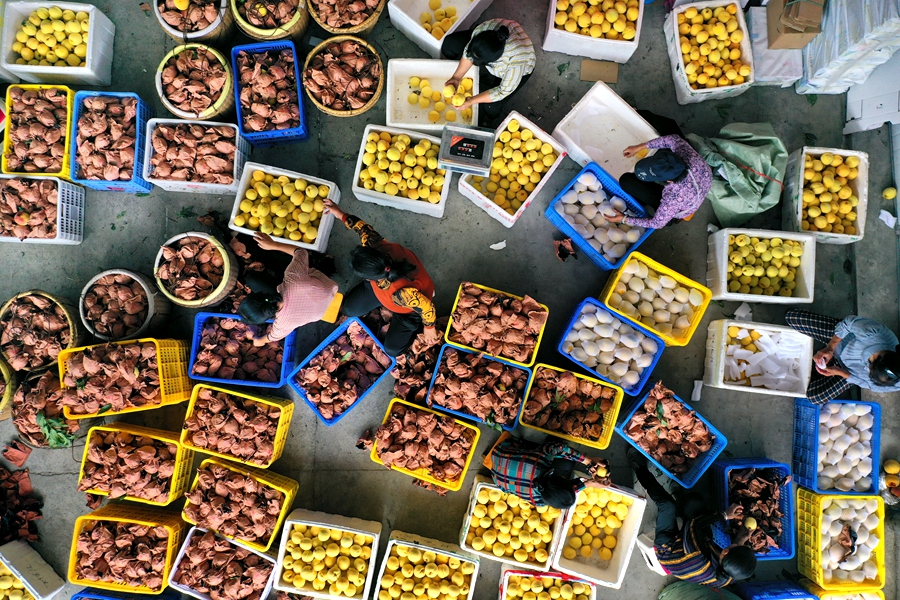 7月31日,炎陵縣中村瑤族鄉(xiāng)平樂村黃桃購銷點,村民在忙著分揀黃桃。目前,炎陵黃桃主產(chǎn)區(qū)已全面開園上市銷售。“炎陵黃桃”一躍成為國家地理標志特色產(chǎn)品,年產(chǎn)量達到4.6萬噸,綜合產(chǎn)值20億元。 湖南日報首席記者 郭立亮 攝