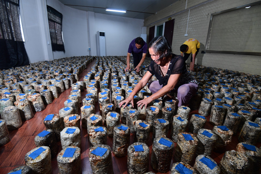 8月9日,五郎溪村制種廠,種植戶在進行白參菌制種。該廠安置了常年務工村民20人,半年以上務工村民110余人。