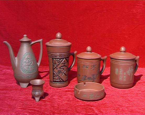 經專家簽定,龍山紫砂陶,與在國際上聲譽很高的宜興紫砂陶含量一致,有極為珍貴的價值。1992年,陶瓷廠李云彬先生在保持陶瓷的原生性的基礎上,采用繪畫、雕刻等手法,集民族文化為一體的特色,研制創作了紫砂陶器《土家風情尊》、《八頭茶具》、《紫砂茶水桶》3件作品,榮獲了湖南省輕工優秀四新產品一等獎。