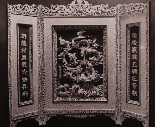 層竹簧鑲嵌竹根浮雕《龍騰海躍》屏