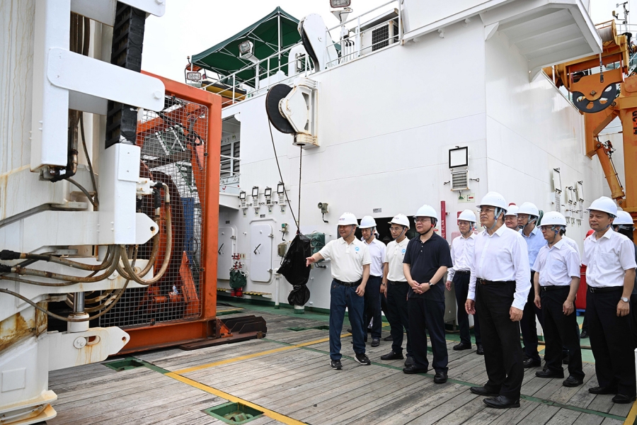 9月8日,沈曉明一行在湖南科技大學三亞研究院科考船調研。