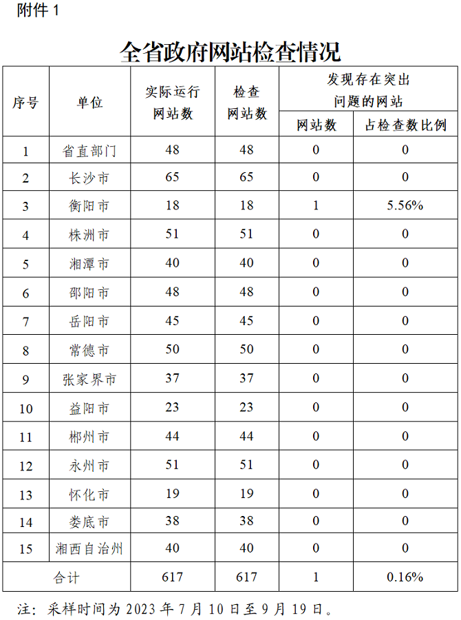 根據(jù)國(guó)務(wù)院辦公廳秘書局《關(guān)于印發(fā)政府網(wǎng)站與政務(wù)新媒體檢查指標(biāo)、監(jiān)管工作年度考核指標(biāo)的通知》(國(guó)辦秘函〔2019〕19號(hào))要求,省政務(wù)管理服務(wù)局組織開展了2023年第三季度政府網(wǎng)站與政務(wù)新媒體檢查工作,經(jīng)省人民政府同意,現(xiàn)將有關(guān)情況通報(bào)如下。