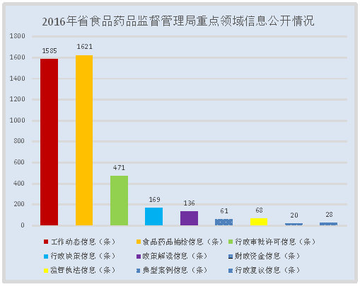 2016年省食品藥品監督管理局在省政府正確領導和省政務公開辦精心指導下,緊緊圍繞食藥監管中心工作,以公眾關切為導向,創新工作思路,健全制度機制,夯實平臺載體,深入推行“五個公開”,省局本級主動公開食藥監管信息18825條、受理依申請公開120件,沒有發生行政復議訴訟糾錯情形,更好地滿足了廣大群眾食品藥品安全的知情權、參與權和監督權。