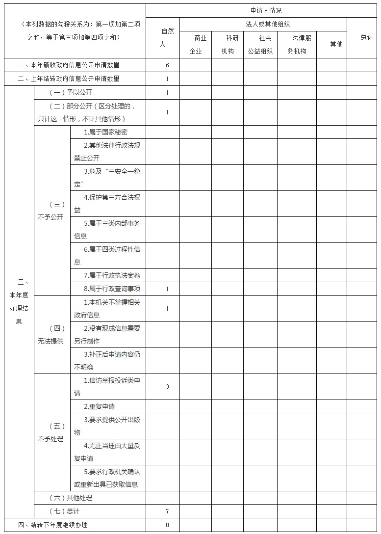 規范依申請公開工作機制,全年共收到和處理信息公開申請6件,全部按規定及時回復。