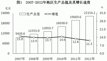 初步核算,全省地區(qū)生產(chǎn)總值22154.2億元,比上年增長11.3%。其中,第一產(chǎn)業(yè)增加值3004.2億元,增長3%;第二產(chǎn)業(yè)增加值10506.4億元,增長12.8%;第三產(chǎn)業(yè)增加值8643.6億元,增長12.2%。按常住人口計算,人均地區(qū)生產(chǎn)總值33480元,增長10.7%。