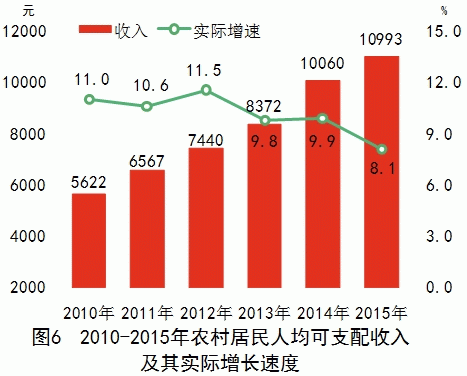 全省全體居民人均可支配收入19317元,比上年增長9.6%,扣除價格因素實際增長8.1%;人均可支配收入中位數16654元。城鎮居民人均可支配收入28838元,比上年增長8.5%,扣除價格因素實際增長6.9%;城鎮居民人均可支配收入中位數27216元。農村居民人均可支配收入10993元,增長9.3%,扣除價格因素實際增長8.1%;農村居民人均可支配收入中位數10032元。分區域看,長株潭地區居民人均可支配收入30655元,增長8.4%;湘南地區18070元,增長9.2%;大湘西地區12877元,增長10.2%;洞庭湖地區17603元,增長9.6%。城鄉居民收入比由上年的2.64:1縮小為2.62:1。