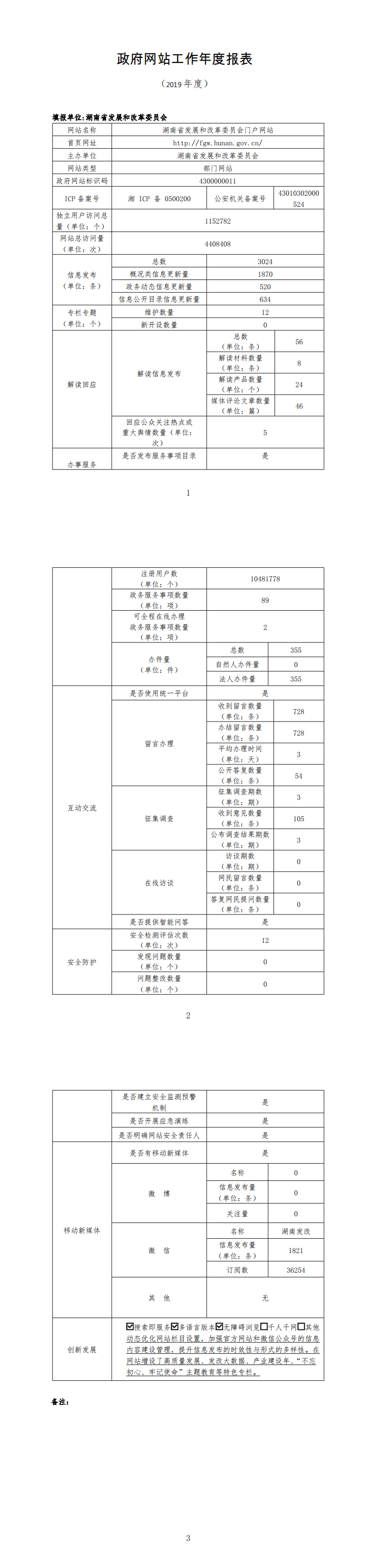 2019年湖南省發(fā)展和改革委員會(huì)網(wǎng)站工作年度報(bào)表