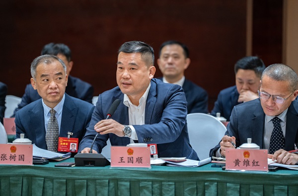1月15日上午,常德市代表團王國順代表(中)就開辟合作社線下業務建言。 湖南日報全媒體記者 李健 鄒尚奇 攝