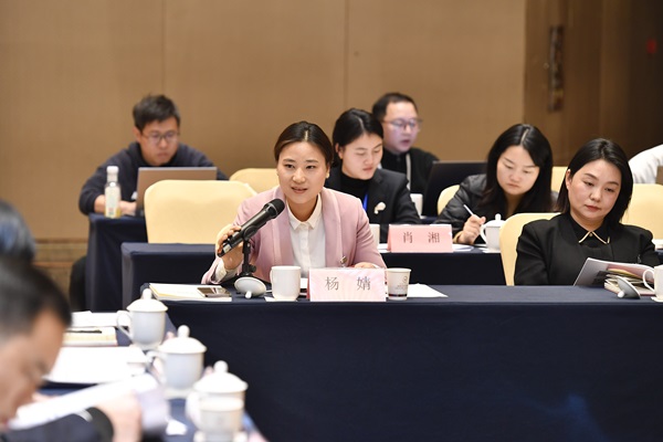 1月15日,懷化市代表團楊婧代表(左)就加快升級產業鏈群建言。 湖南日報全媒體記者 辜鵬博 攝
