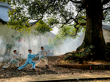 古樟群里練晨功作者:楊森明