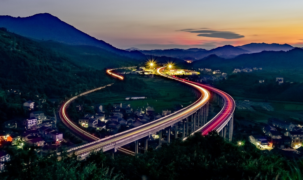 該圖片通過三條美麗曲線,是穿越我縣工業集中區的湘黔鐵路和敘懷高速上的風馳電掣的火車汽車行進所形成的風景線。是我們的經濟命脈,它不僅是我們的復興之路,更是我們實現中國夢的康莊大道。