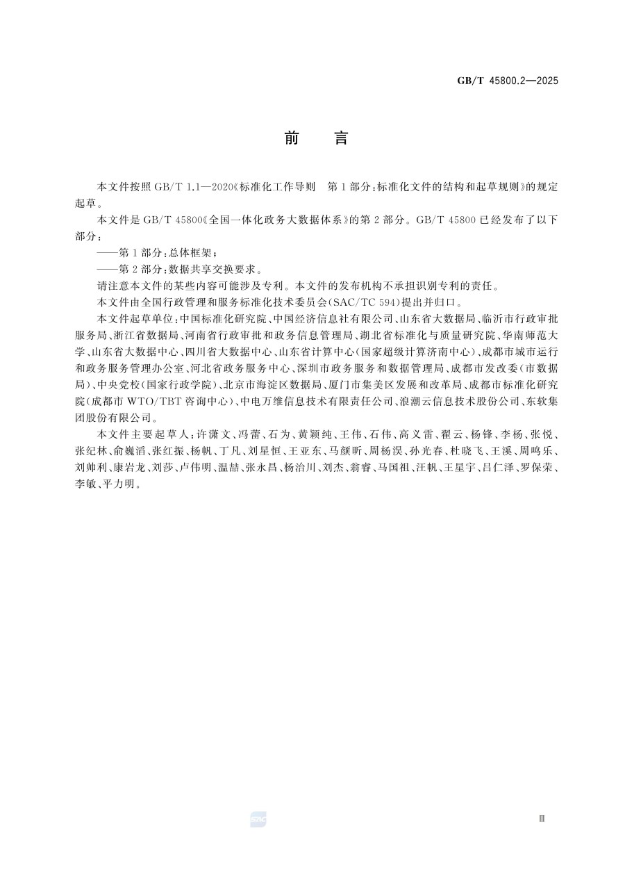 《全國一體化政務大數據體系 第2部分:數據共享交換要求》(GB/T 45800.2-2025)