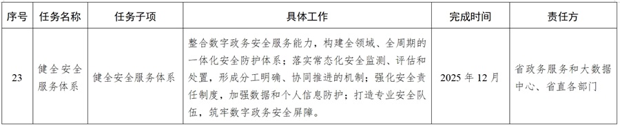 2025年12月31日前,統(tǒng)籌省級政務服務公共平臺基礎能力建設和保障,滿足全省數字政務公共基礎能力“總支撐”需求,通過完善統(tǒng)一身份認證、電子證照、電子印章、統(tǒng)一支付、統(tǒng)一用戶中心、應用能力開放平臺、AI大模型等基礎支撐能力,全面支撐全省政務服務業(yè)務應用。整合數字政務應用安全服務能力,實現集中監(jiān)控與管理,提升整體安全防護水平。