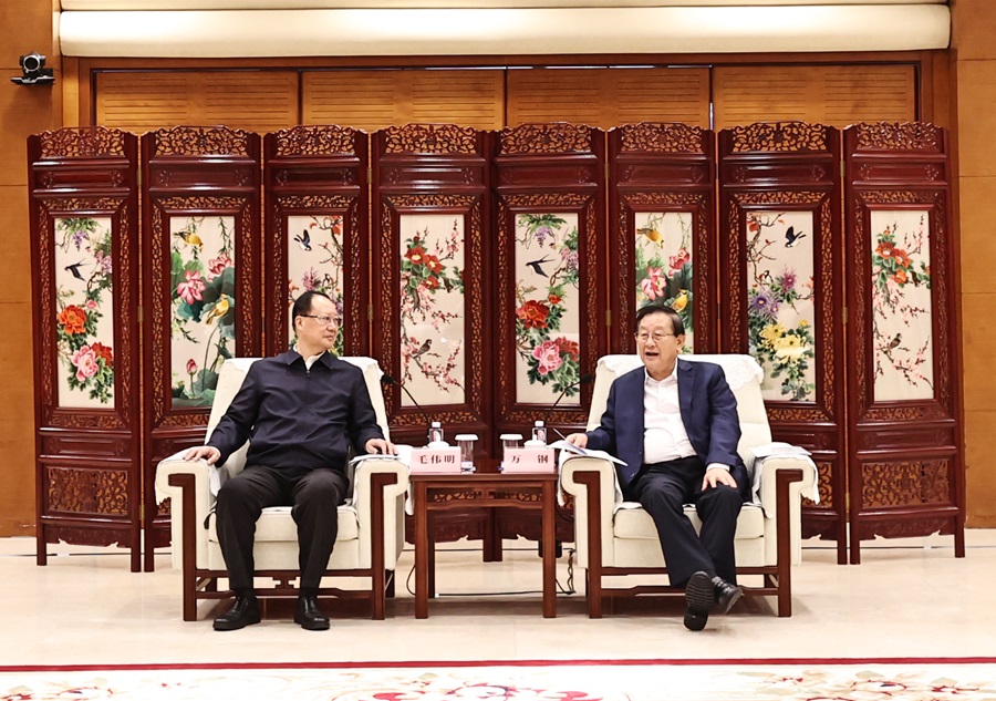 10月10日上午,萬鋼與毛偉明交流。