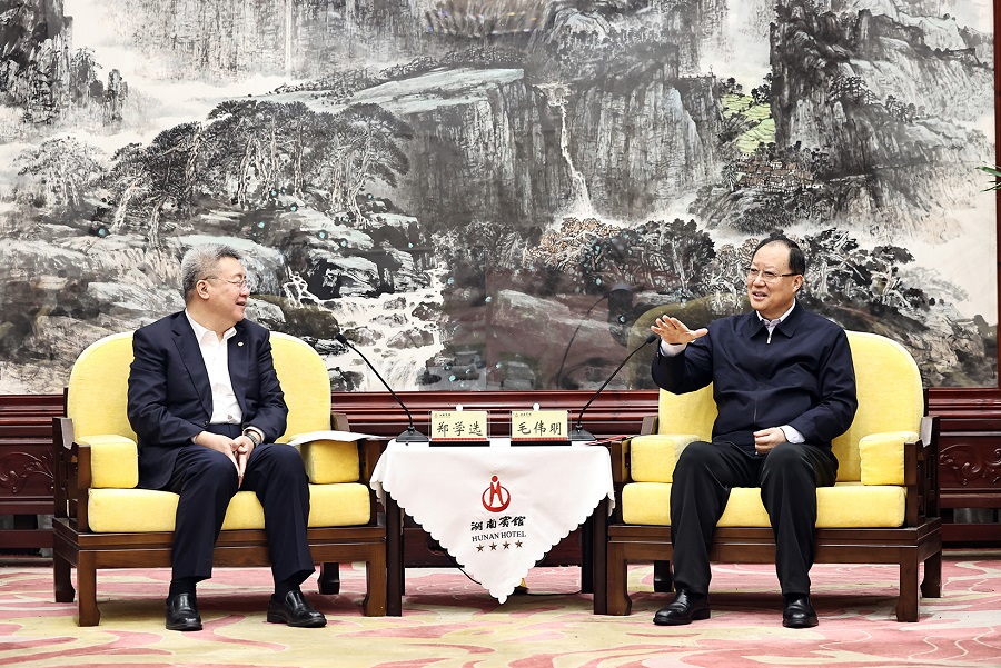 3月28日上午,省政府與中國建筑集團有限公司在長沙舉行工作會談,就深入貫徹習近平總書記關于湖南工作的重要講話和指示批示精神,持續深化央地合作,共育建筑業新質生產力。省委副書記、省長毛偉明,中建集團黨組書記、董事長鄭學選參加。
