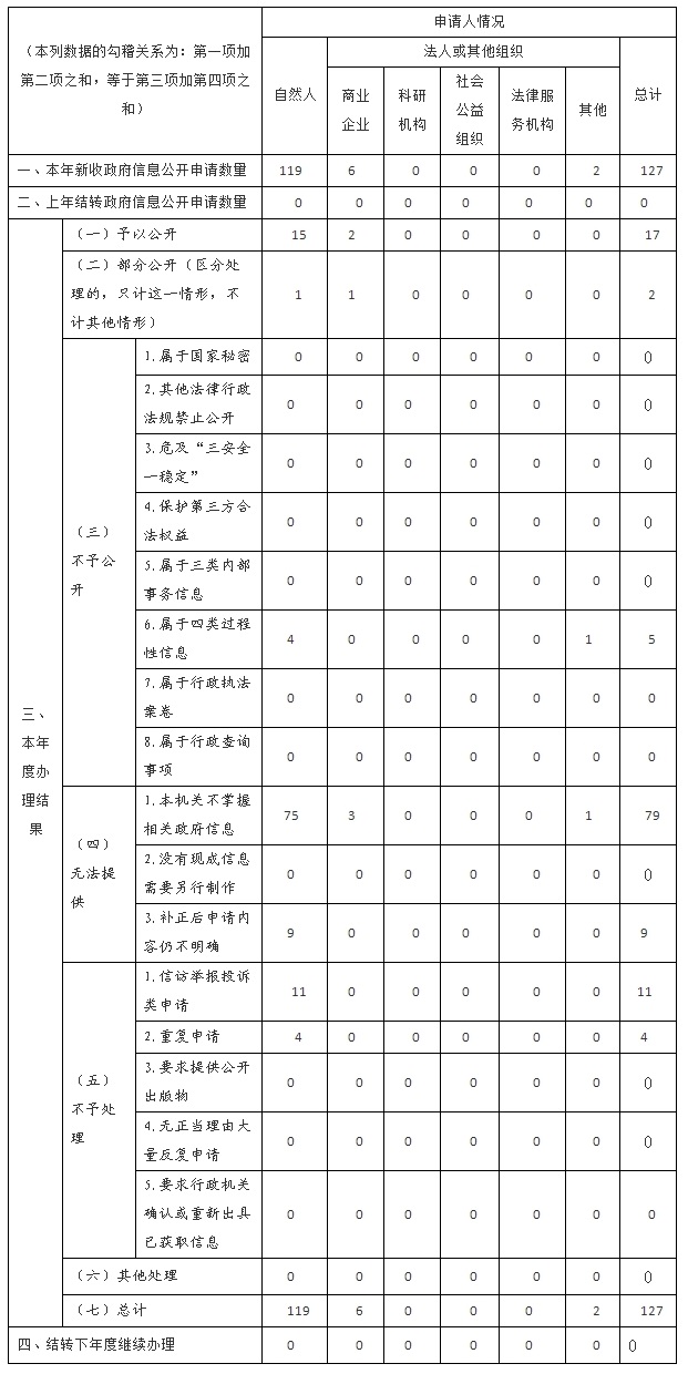 三、行政機關收到和處理政府信息公開申請情況