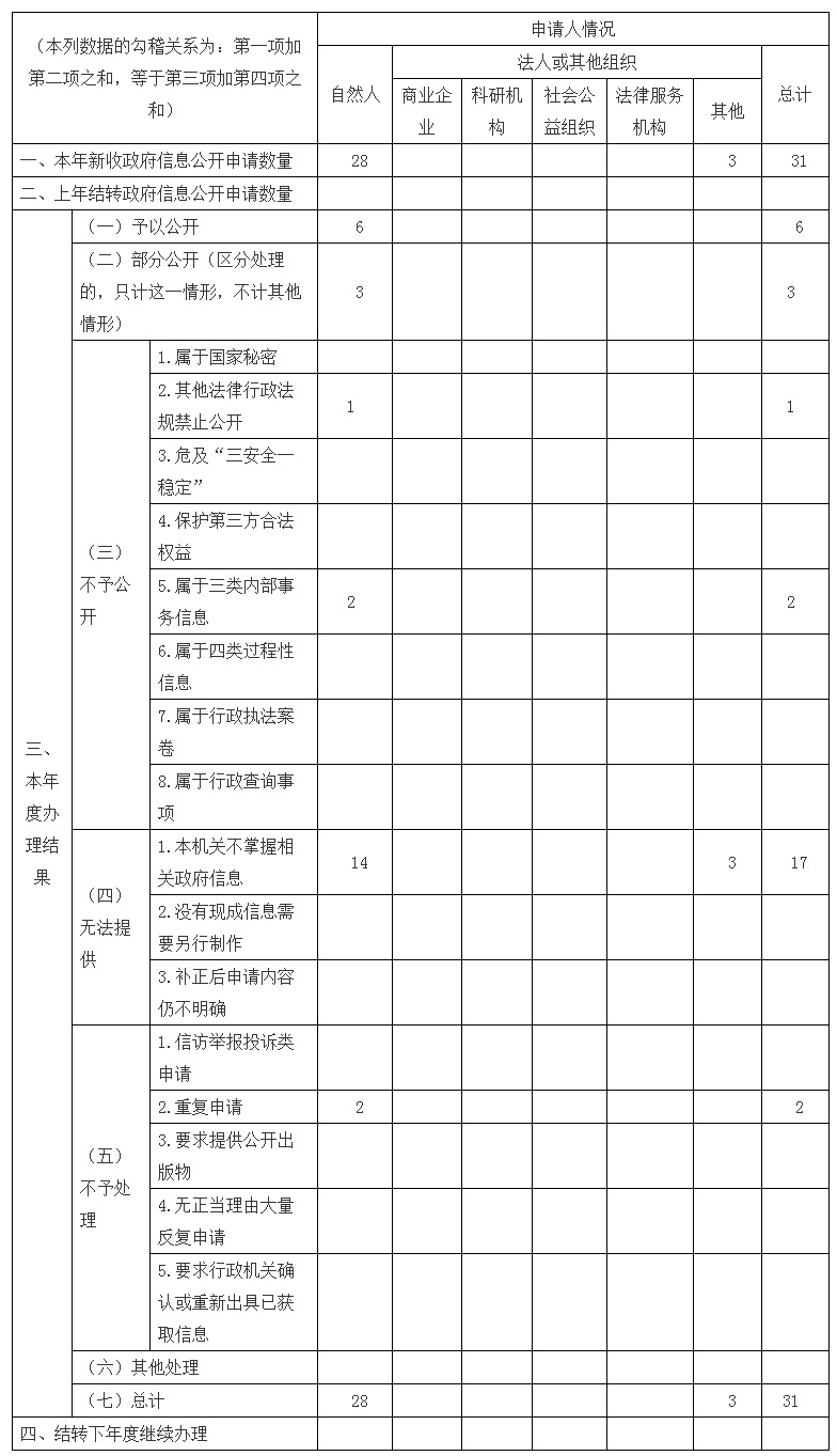 根據《中華人民共和國政府信息公開條例》(以下簡稱條例),編制并向社會公布《湖南省人力資源和社會保障廳2019年度政府信息公開年度報告》。本報告由總體情況、主動公開政府信息情況、收到和處理政府信息公開申請情況、政府信息公開行政復議、行政訴訟情況以及存在的主要問題和改進措施幾方面內容組成。報告所列統計數據的期限自2019年1月1日至2019年12月31日。如對本報告有疑義,請與湖南省人力資源和社會保障廳政務(政府信息)公開領導小組辦公室聯系(地址:長沙市天心區銀杏路6號,郵編:410004,電話:0731-84900101)。