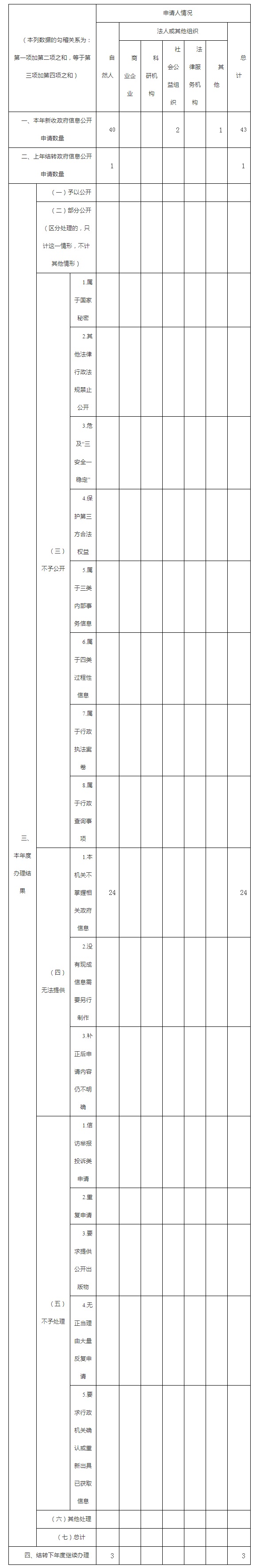 本年度報告根據《中華人民共和國政府信息公開條例》(國務院令第711號)(以下簡稱“條例”)編制,由總體情況、主動公開政府信息情況、收到和處理政府信息公開申請情況、政府信息公開行政復議和行政訴訟情況、存在的主要問題及改進情況、其他需要報告的事項六個部分組成。